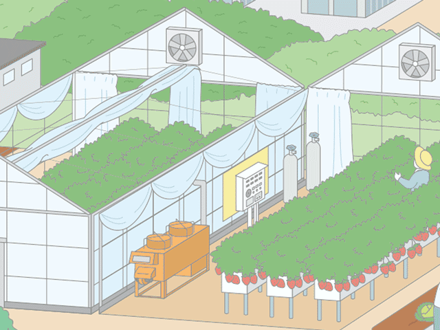 • さらに近年では、CO2や湿度を最適化する技術、AI制御による自動化資材などが開発され、より精密な環境制御機器の普及が始まっています。当社は、栽培環境の最適化を実現する、ハウス施設資材を提案します。