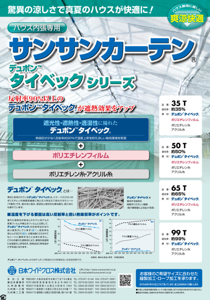 日射量や温度を調整し、作物の生育環境を整えるための資材。遮光ネット、遮光塗料、遮熱シート、調光フィルムなどがあり、ハウス内の温度管理や光量調整に役立ちます。