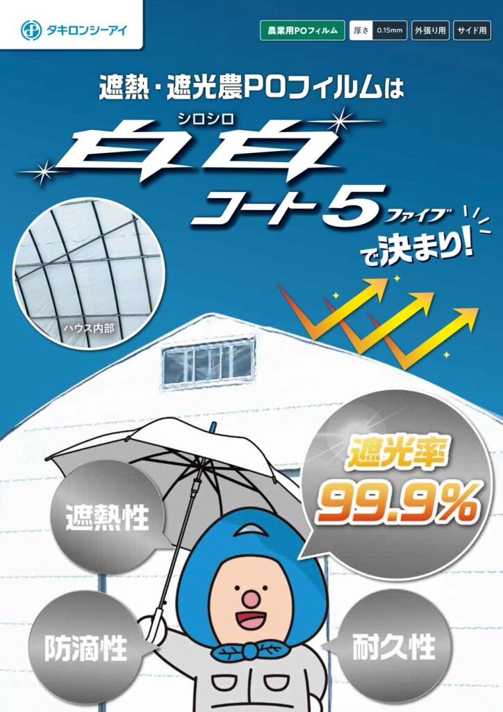 日射量や温度を調整し、作物の生育環境を整えるための資材。遮光ネット、遮光塗料、遮熱シート、調光フィルムなどがあり、ハウス内の温度管理や光量調整に役立ちます。