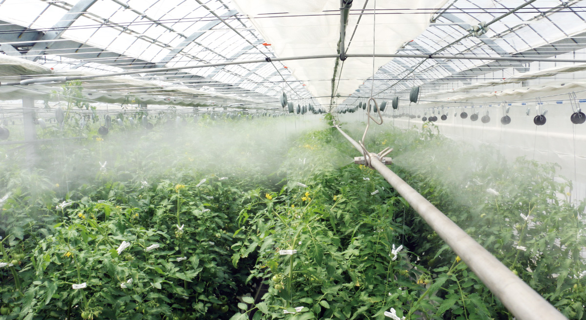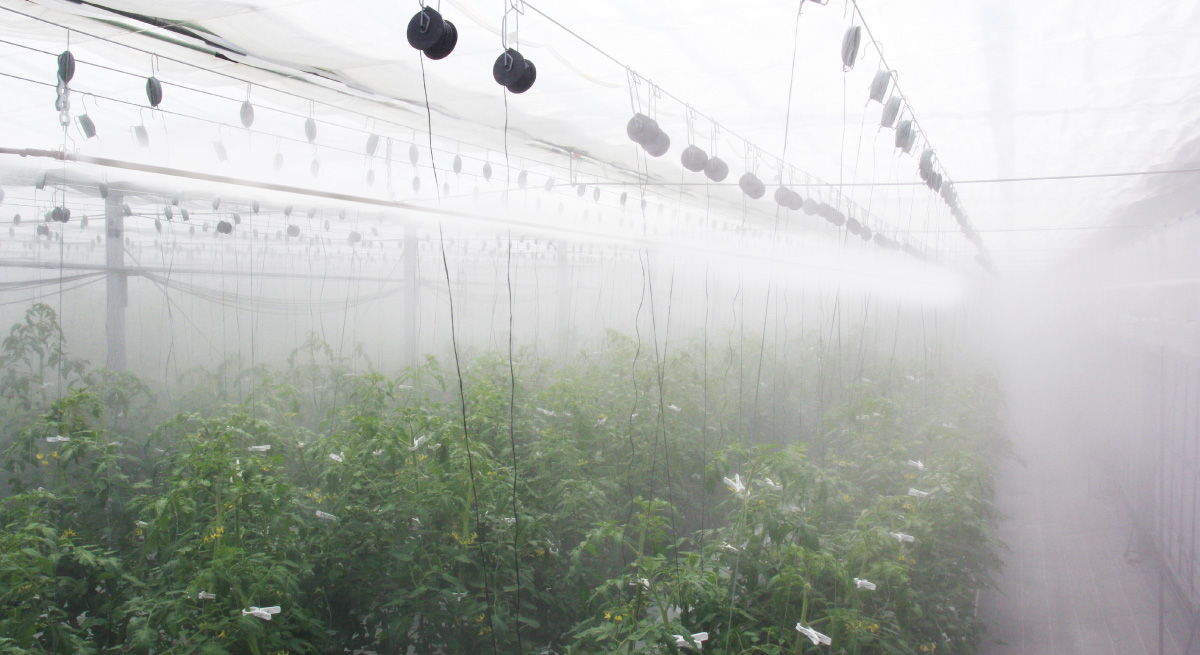 - 細霧冷房よりも微細な霧のため、作物や施設内を濡らさない