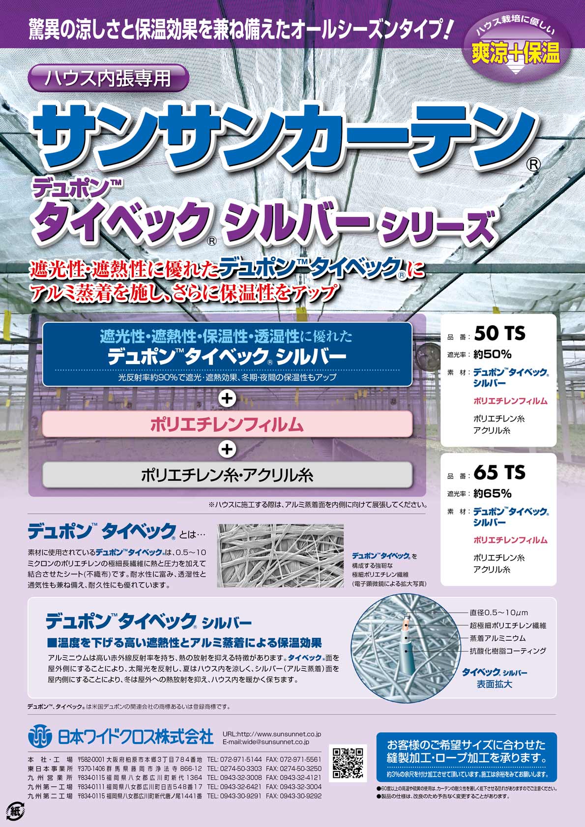 上記の「デュポン™タイベック®」に蒸着してあるアルミニウムは高い赤外線反射率を持ち、熱の放射を抑える特徴があります。タイベック®面を屋外側にすることにより太陽光を反射し、夏はハウス内を涼しくします。