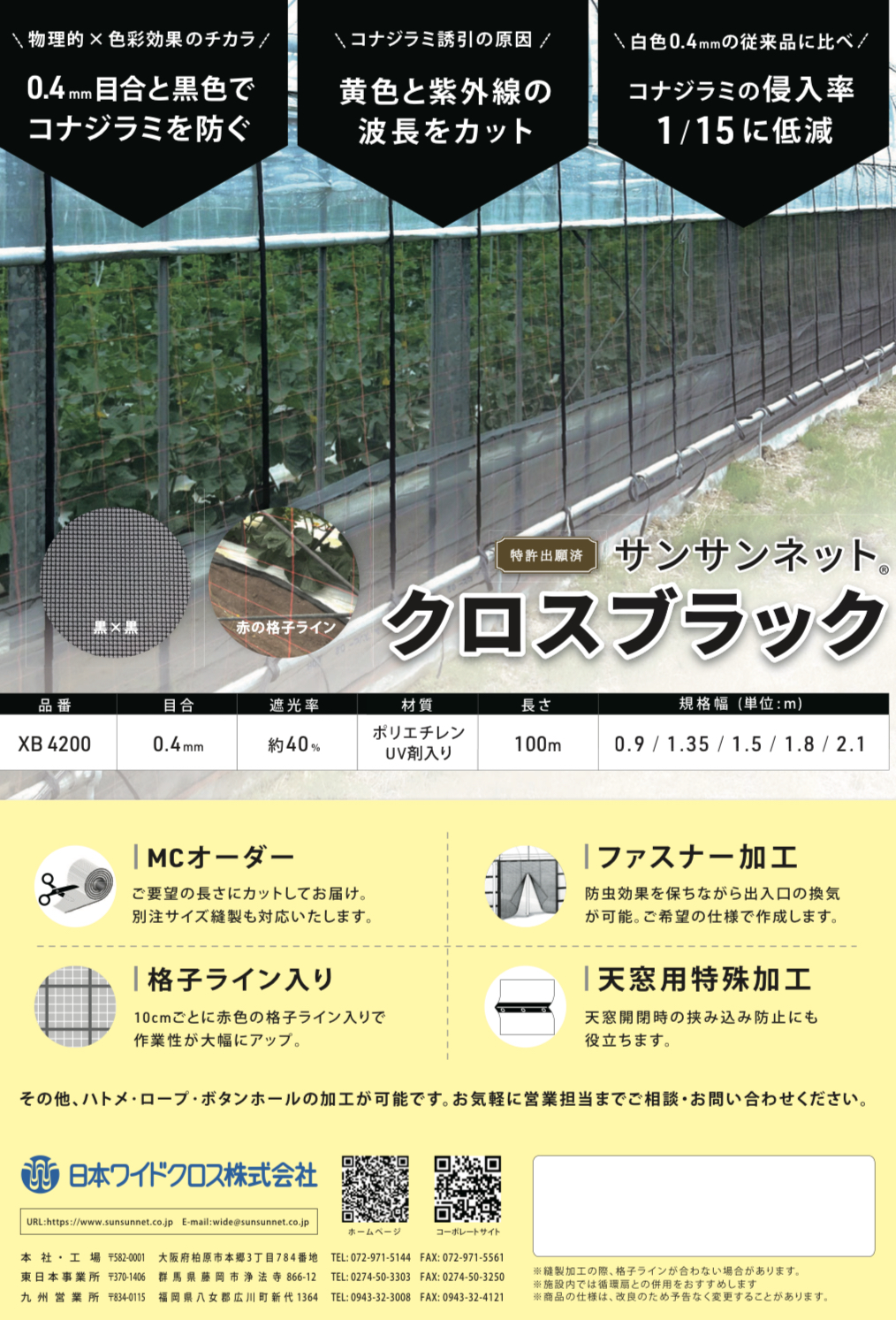 - 0.4mm目合と黒色で コナジラミを防ぐ!