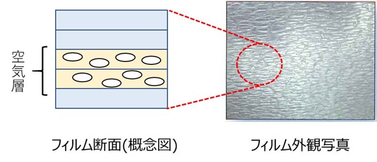 当社独自の5層構造を活かし、内層にエア(気泡)をプラスしたフィルムです。