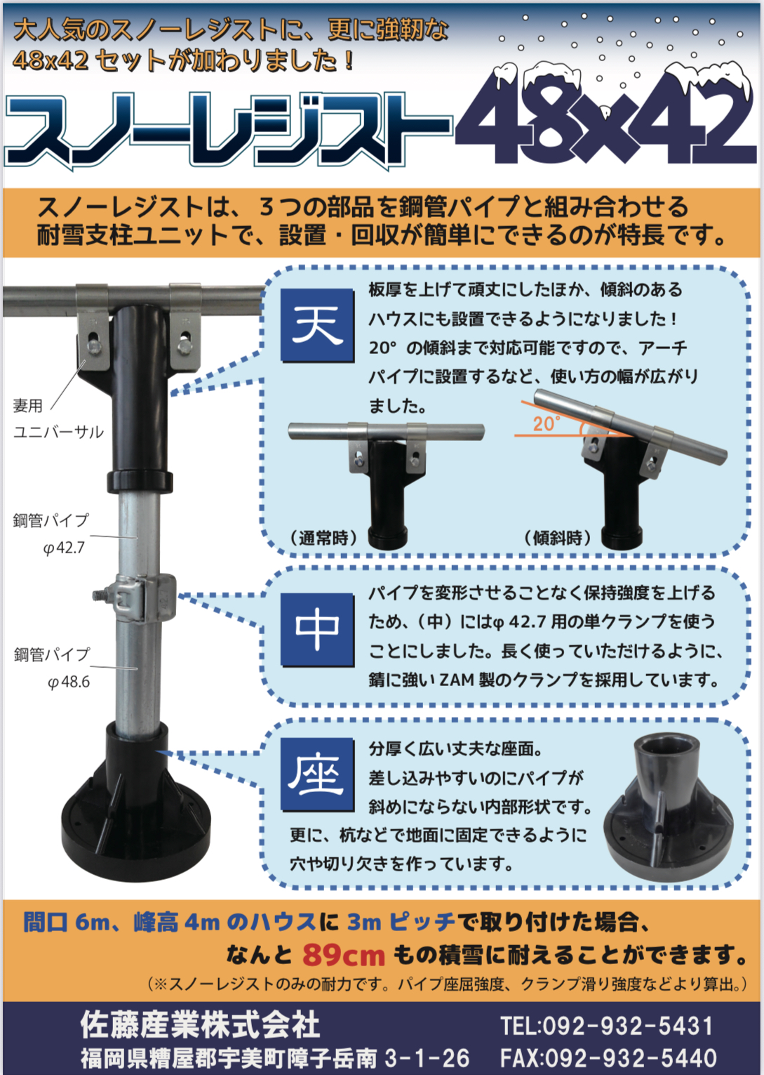 - 鋼管パイプと組み合わせる耐雪支柱ユニットです!
