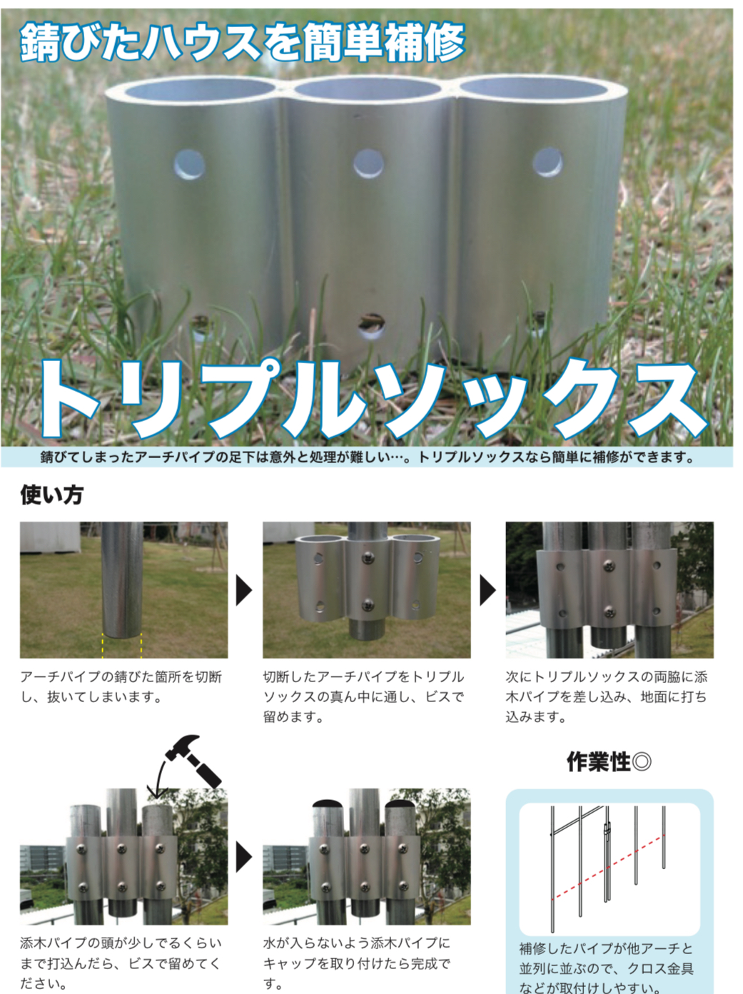 - 錆びたアーチパイプを切断し、簡単補修!