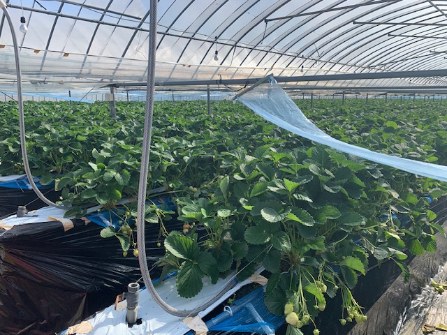 多孔質CO2チューブで大面積でもムダなくムラなく群落内に漂うCO2施用。