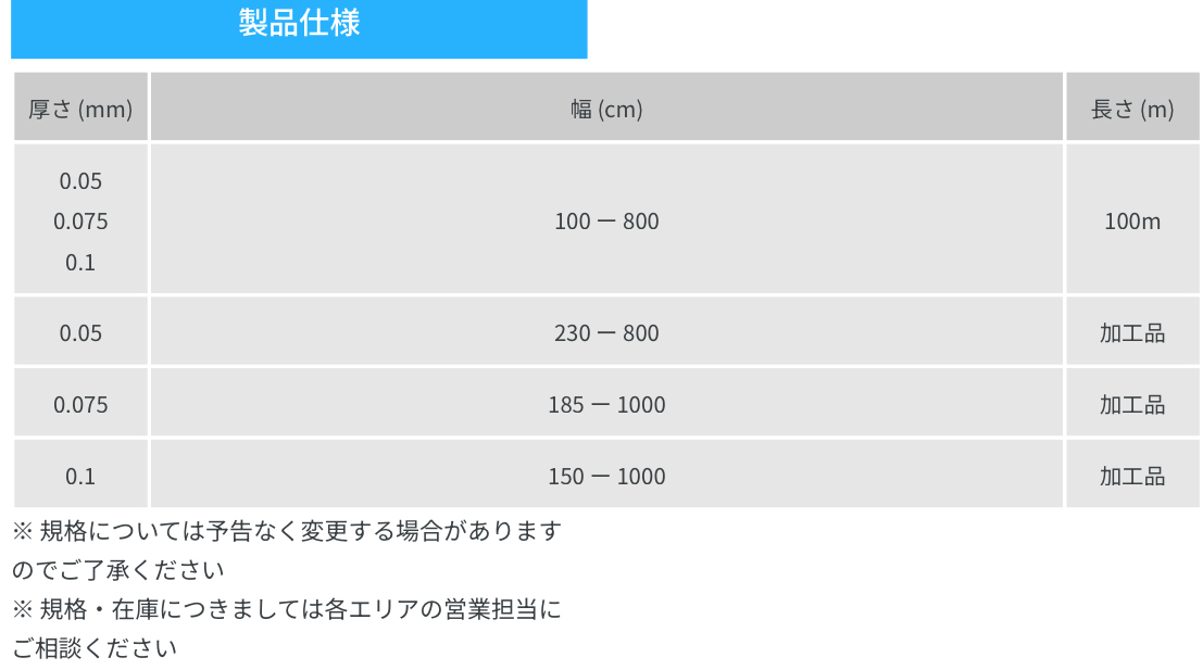 ●イオウ燻蒸や散布・およびイオウ含有農薬の付着により、フイルムの劣化が促進する場合がありますのでご注意願います。