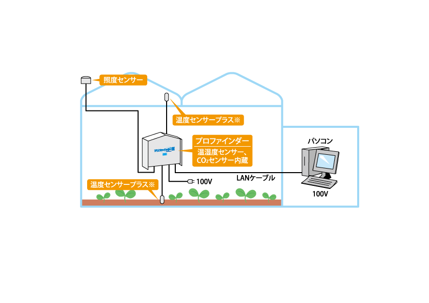 - プロファインダークラウドの入会で、スマホやタブレットでハウス内環境を確認可能