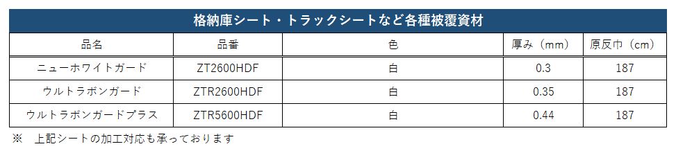 遮熱・防汚・防炎・耐久性を兼ね備えた白色ターポリンシートシリーズです。