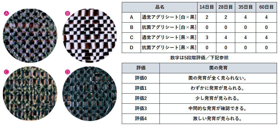 抗菌アグリシートでは菌の発育が全く見られず、極めて強い抗菌力が立証されました。