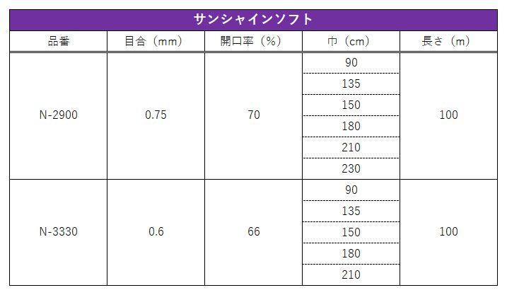 サンシャインソフトシリーズは従来品と比較して細糸を採用し、通気と強度を両立した防虫ネットとなっております。