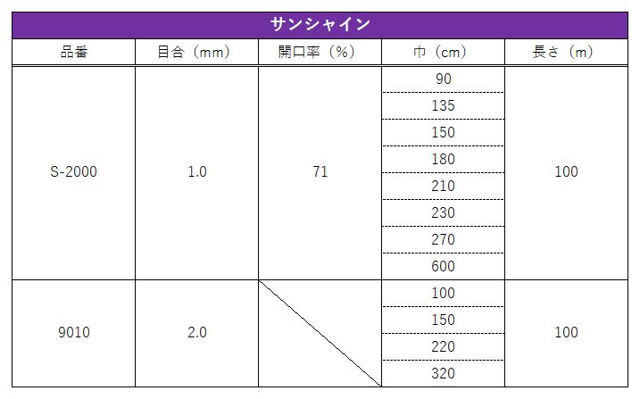 サンシャインシリーズは通気性・透水性・透光性に優れた耐久性のある防虫ネットです。