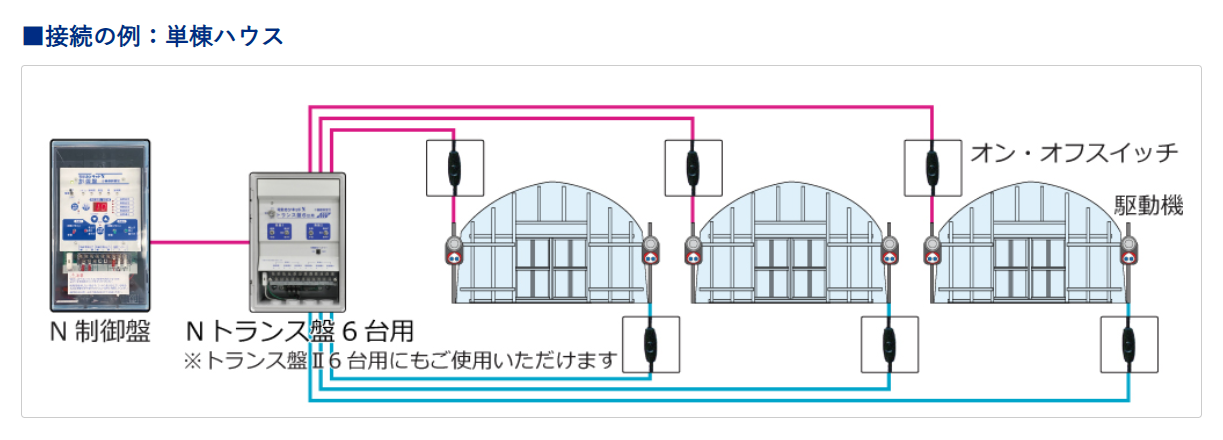 - Nトランス盤と駆動機の間に接続することで、駆動機1台ごとにオン・オフを切り替えられるスイッチです!