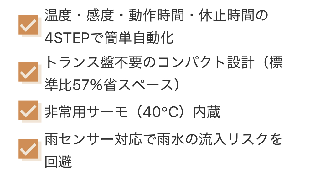 - 場所を選ばずどこでも 自動換気で省力化!