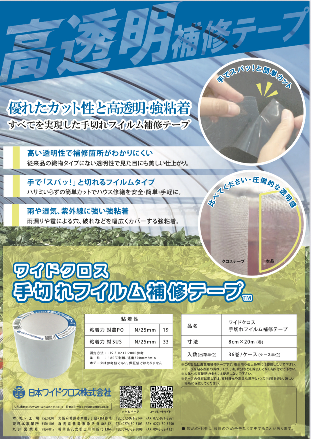 ワイドクロス 手切れフイルム補修テープを更新しました。 ワイドクロス 手切れフイルム補修テープを更新しました。 登録ページ: ワイドクロス 手切れフイルム補修テープ 分類カテゴリー: その他農業資材, ビニールハウス資材 更新日: 2025年11月21日 よかったらシェアしてね! URLをコピーしました! URLをコピーしました!